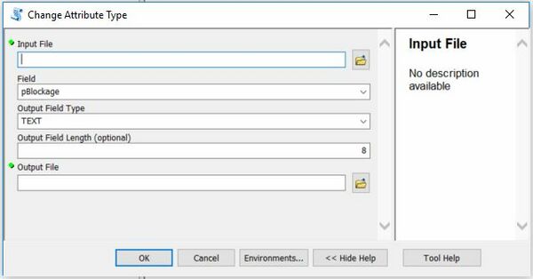 This tool allows you to modify a shapefile attribute (field) type whist keeping the attribute order intact. An example of its use is the modification of the pBlockage attribute in a 1d_nwk layer from 'double' to 'text' for the new Australian Rainfall and Runoff blockage scenarios. Please note that at present the script only allows for the change of attributes to type text.