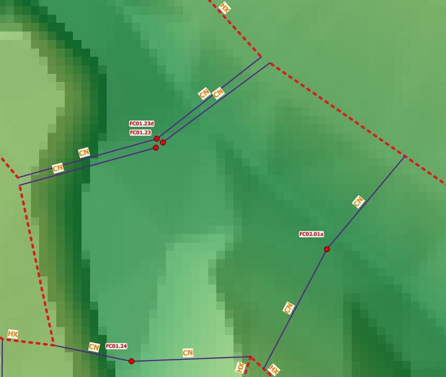 8. Once all the CN and HX lines have been digitised along the tributary, save the file.