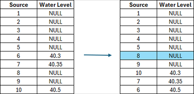 Note, the median value for the example below is a 'NULL' value, the output is a dry cell. 7 out of the 10 inputs are dry at this particular cell. Once the outputs are ordered (with NULL showing at the lowest spots), the median (6th) value for the cell is 'NULL' (dry) and '8' is the source grid output.