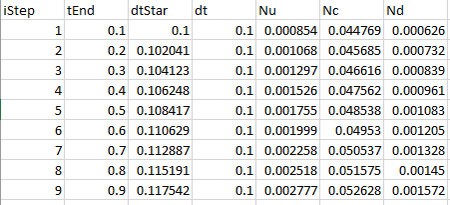 Note: TUFLOW HPC allows the control numbers to be breached by 20%. The timestep will not be repeated with Nc, Nu smaller than 1.2 and Nd smaller than 0.36.