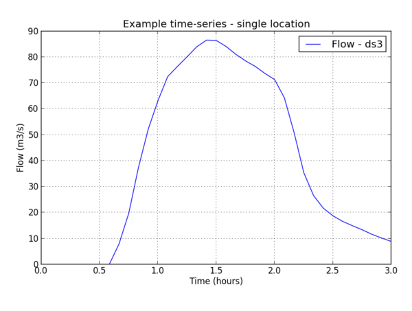 Will return flow (Q) data for the 1D channel with ID ds3. The optional 'L' geometry indicates that this is stored on a line object in the GIS plot objects. Note As the time data typically does not change (this is not a return argument) but can be accessed by the res.times. See the examples below.