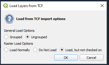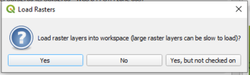 - Note: Since v3.5, the user is given the option to load raster layers normally, don't load rasters, or load them but toggle the visibity off.