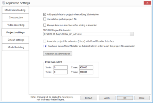 2) Select the 'Project Settings' sub-menu and within the TUFLOW Engine File Location choose to browse to the version of TUFLOW that you would like to link Flood Modeller to. Choose 'Open' and then 'OK'.