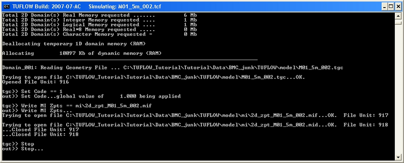 - Enter the following line of text into the TCF file. Enter an exclamation mark before the Write Empty MI Files command (or delete it) so TUFLOW now ignores this command. Save the TCF file. Geometry Control File == ..\model\M01_5m_002.tgc