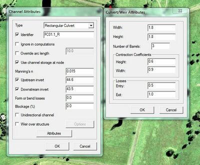 - Select OK twice to exit the Culvert/Weir Attributes dialog.