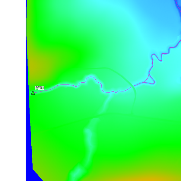 5. Repeat this process and digitise a point feature snapped to the upstream extent of the secondary channel FC02. Again specify the boundary Type as QT and this time the Name as FC02. This name will link channel FC02 to the unique inflow boundary in the bc_database.