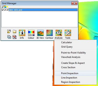 6. Once the points have been created we need to update the "Type" attribute to "ZP". Use Table >> Update Columnn and set the "Flags" to blank (""). The next step is to inspect the elevations from the DEM. To do this open the Grid Manager in Vertical Mapper and select Analysis >> Point Inspection.