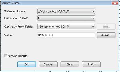 7. In the dialogue set the Table to Update to 2d_bc_M04_HX_001_P, and select OK.
