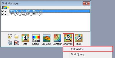 - From the Vertical Mapper Grid Manager select Analysis >> Calculator