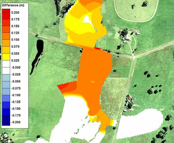 In this page we will be calculating the differences in peak flood levels for the developed and existing case model results. This will allow us to easily review the impacts of the developed case. We will subtract the developed flood levels from the existing flood levels to determine the change in flood levels that the development has resulted in.