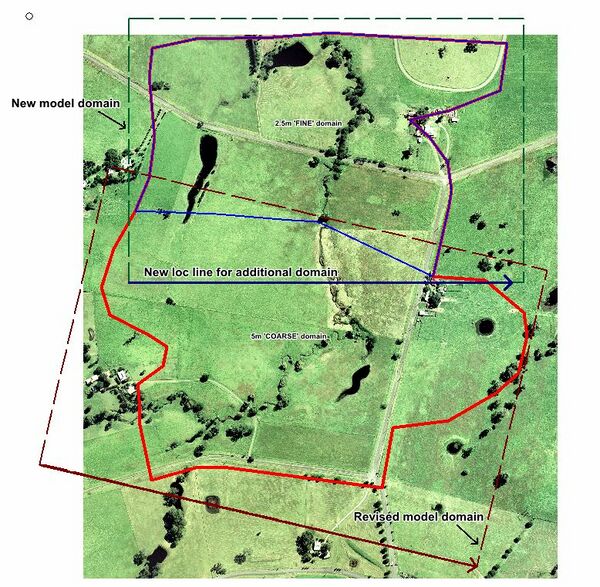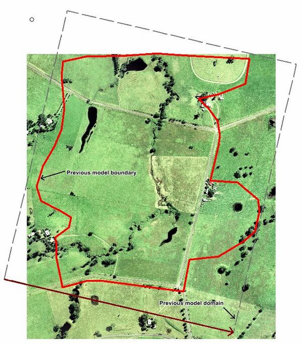 Previous modeling utilises a consistent 5m cell size across the whole model. As shown below, the model incorporated a single model boundary and domain grid.