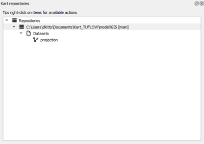 Kart is a version control tool which stores geospatial data (and tabular data) in Git, providing a neat version control system whilst building TUFLOW models. Despite using Git, there is no requirement for the user to have a thorough understanding of Git, it's processes and commands. The Kart QGIS plugin provides user interface for Kart which provides |