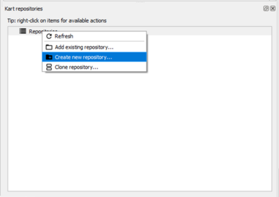 - Use the Kart Create new repository tool to create a new Kart repository.