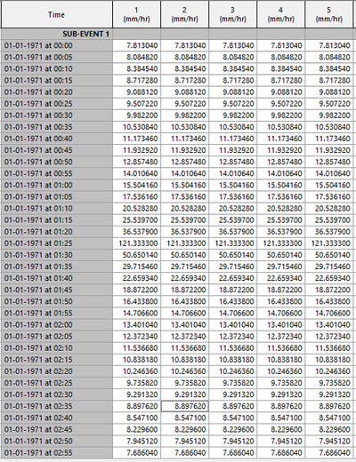 |'''1D Subcatchment''' ||Subcatchment||2d_sa_subcatchment||Only the Subcatchment Geometry is exported on the assumption that this would be converted to a 2d_SA polygon. |