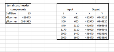 - From the converted terrain ascii grid (Section 2.1), copy Cellsize, xllcorner, and yllcorner values from the grid header into Excel