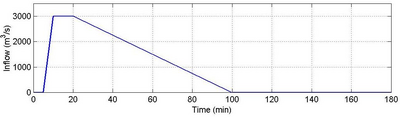 The inflow hydrograph shown below is applied as a boundary condition at the upstream end of the valley.