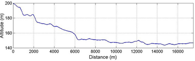 This test is designed to simulate flood wave propagation down a river valley following the failure of a dam. The valley DEM is ~0.8 km by ~17 km and the valley slopes downstream on a slope of ~0.01 in its upper region, easing to ~0.001 at lower elevations.