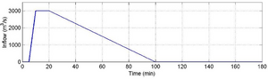 The inflow hydrograph shown below is applied as a boundary condition at the upstream end of the valley.