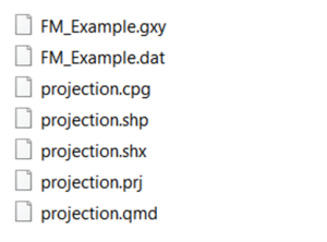 - Open the file. Then, bring in the relevant files from the Flood Modeller model that requires conversion, in this example the .dat, .gxy and projection files. The projection.shp file will help you to assign your model to the correct projection and can come from an existing TUFLOW model or shapefile in the correct projection. See figure below for the required files:
