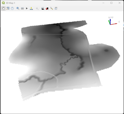 The figure below demonstrates the resultant 3D surface. For more details on navigating within the 3D map view, refer to QGIS Documentation - 3D Map View, Navigation Options