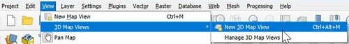 - Create a new 3D map view under View >> 3D Views >> New 3D Map View: