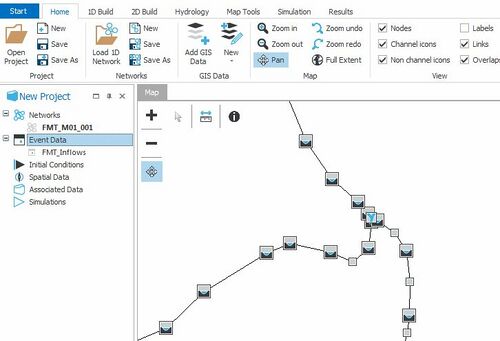 - Open Flood Modeller. Select 'Load 1D Network'. Navigate to \FMT_Tutorial\FMT_M01\Flood_Modeller\DAT and load the FMT_M01_001.dat.