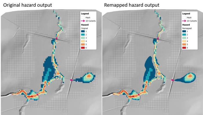 Figure 7 Original vs remapped hazard output for 10/20m mesh SGS model.