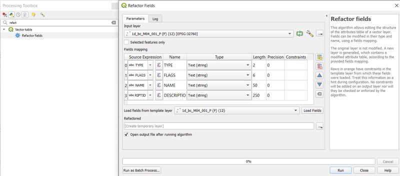 Refactor Fields in QGIS Processing Toolbox