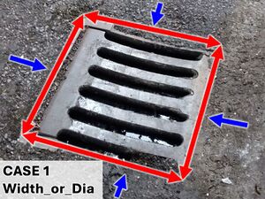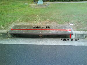 Width_or_Dia: Sets the width of the pit inlet section in the vertical plane. The width is the total width in the direction of flow to the pit. For example: