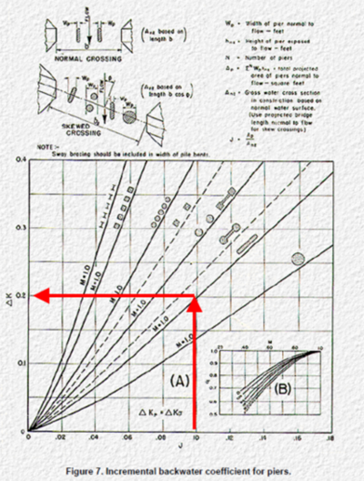 - Use the Figure 7 Incremental Backwater Coefficient for Piers data to calculate Kp.